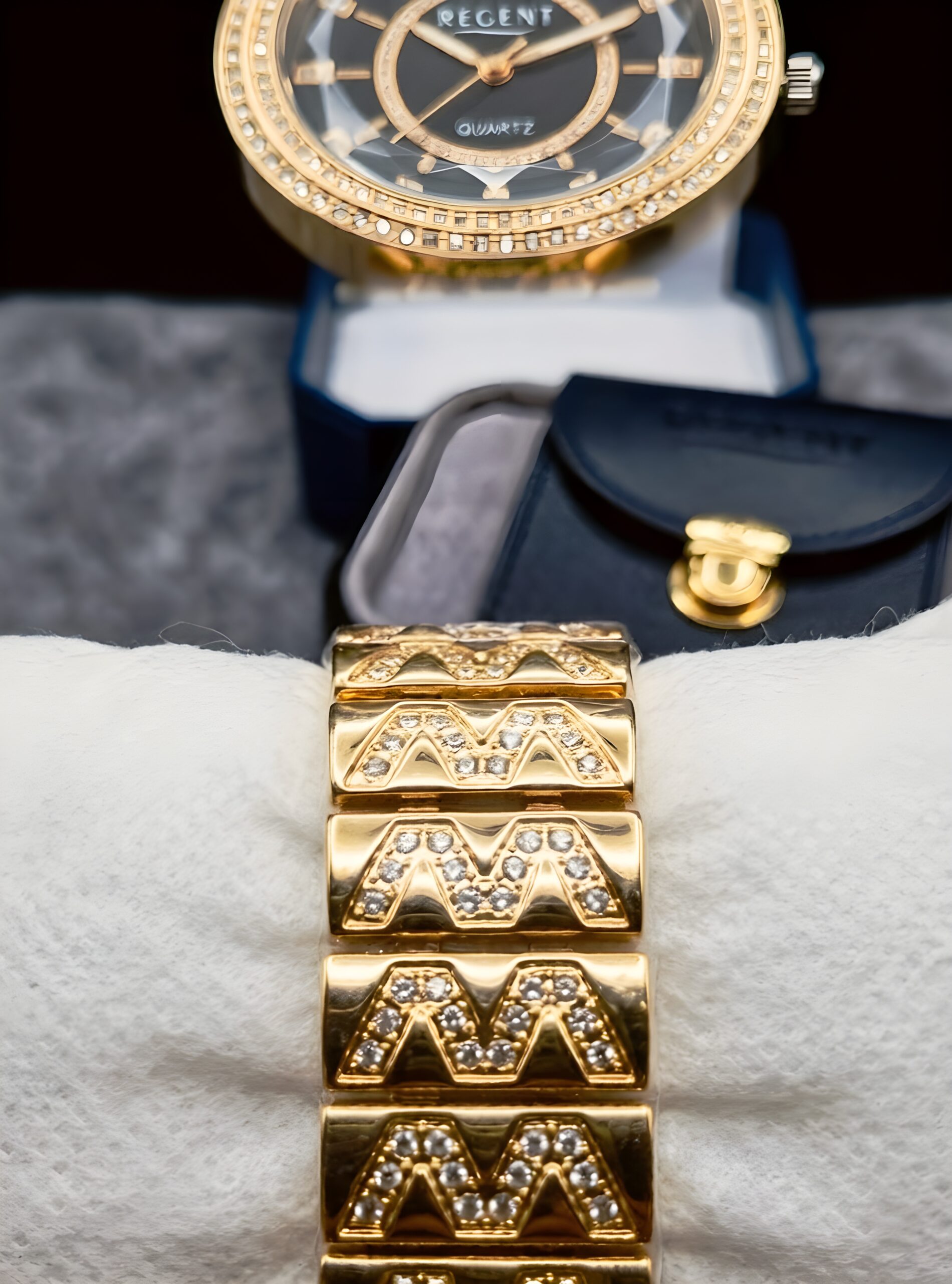 If you are looking for a ladies’ watch that perfectly blends luxury, elegance, and modern fashion, then the Recent Ladies Black Dial Golden Diamond Watch is the perfect choice for you.