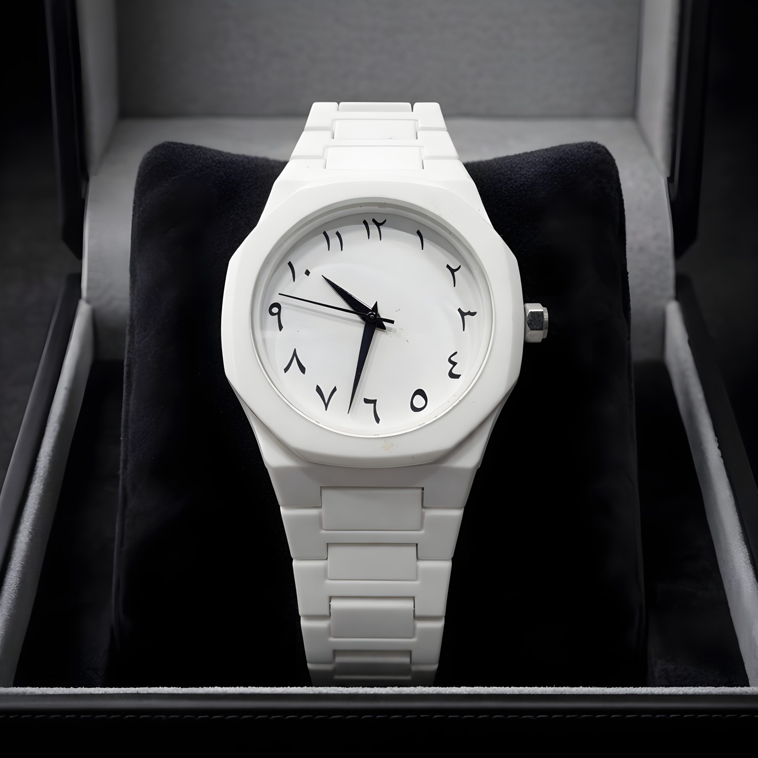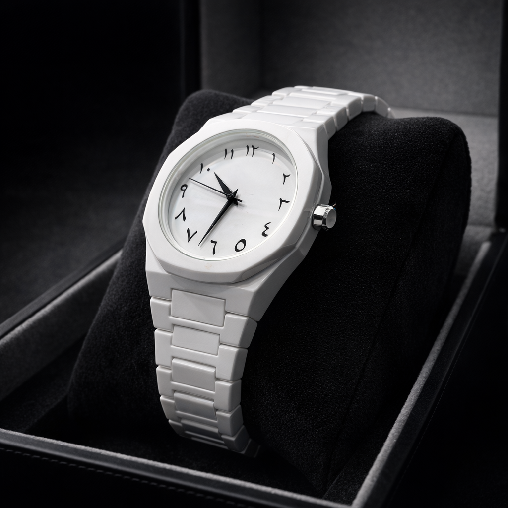 White Arabic Aura Watch for Men – Luxury Stylish Arabic Dial Wrist Watch